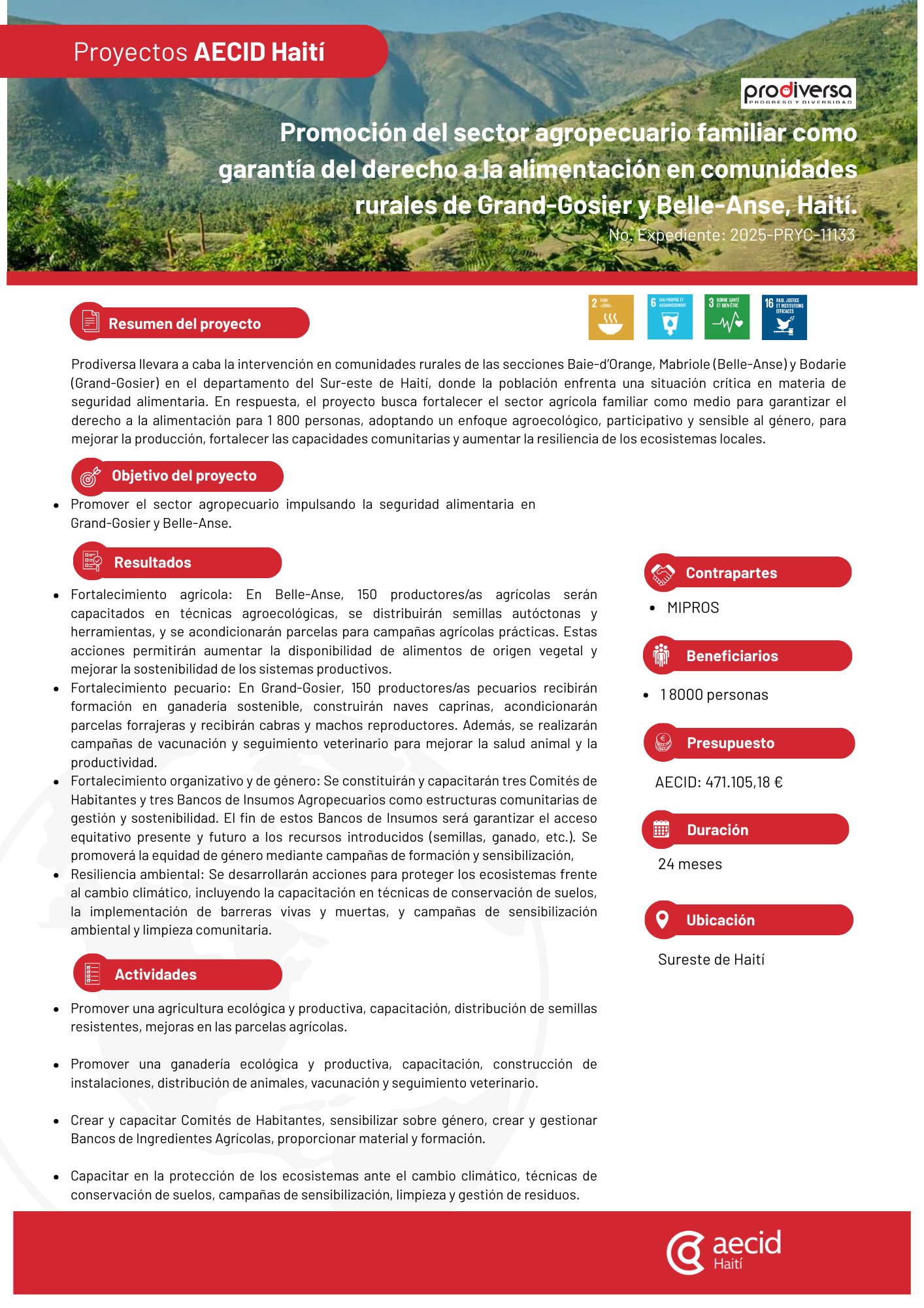 2025 - PRODIVERSA - Promoción del sector agropecuario familiar como garantía del derecho a la alimentación en comunidades rurales de Grand-Gosier y Belle-Anse, Haití.