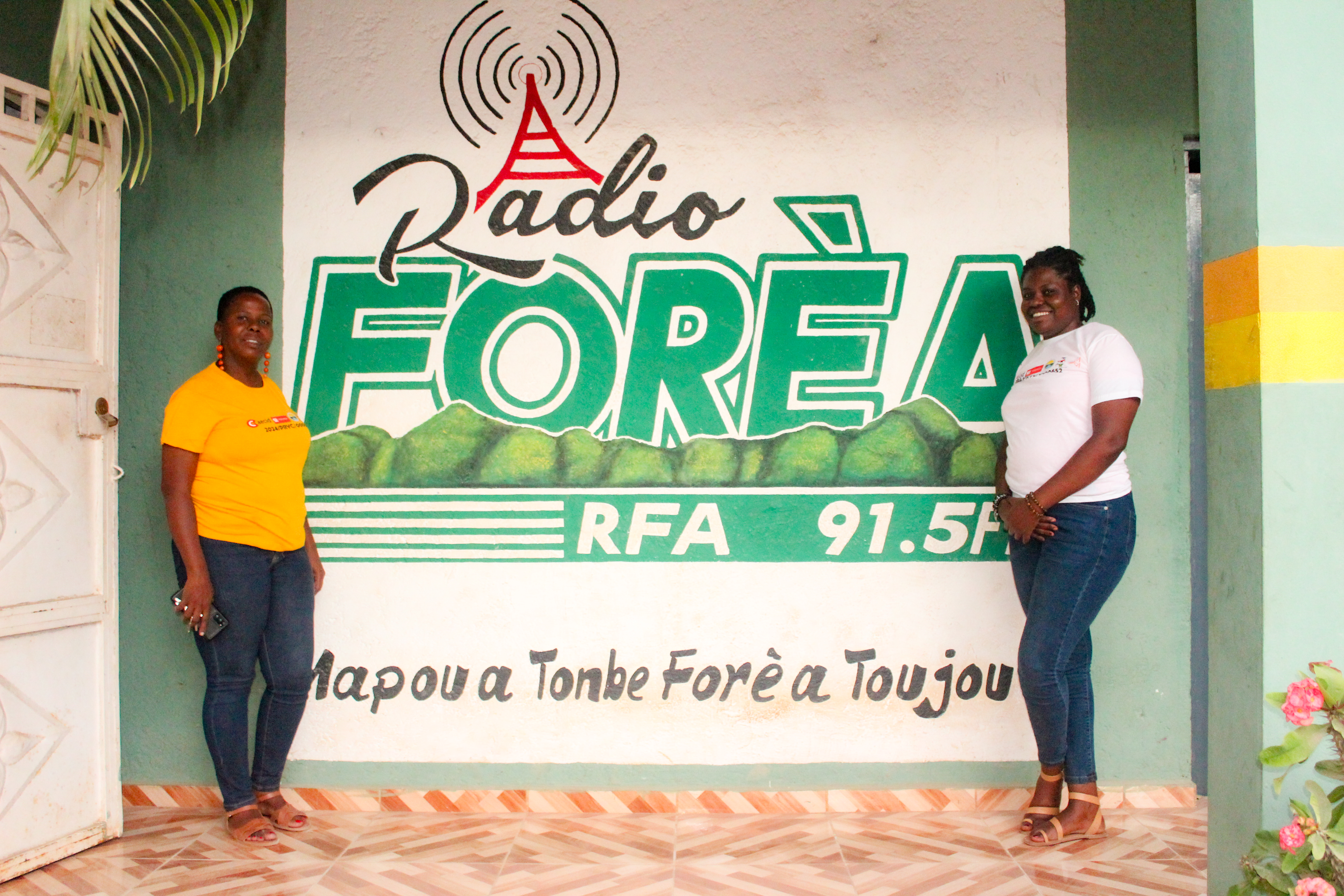 Marie-Vesta Desameau y Sheyla Cayo en la radio comunitaria FORÈA (91.5 FM). Bainet, sureste de Haití.