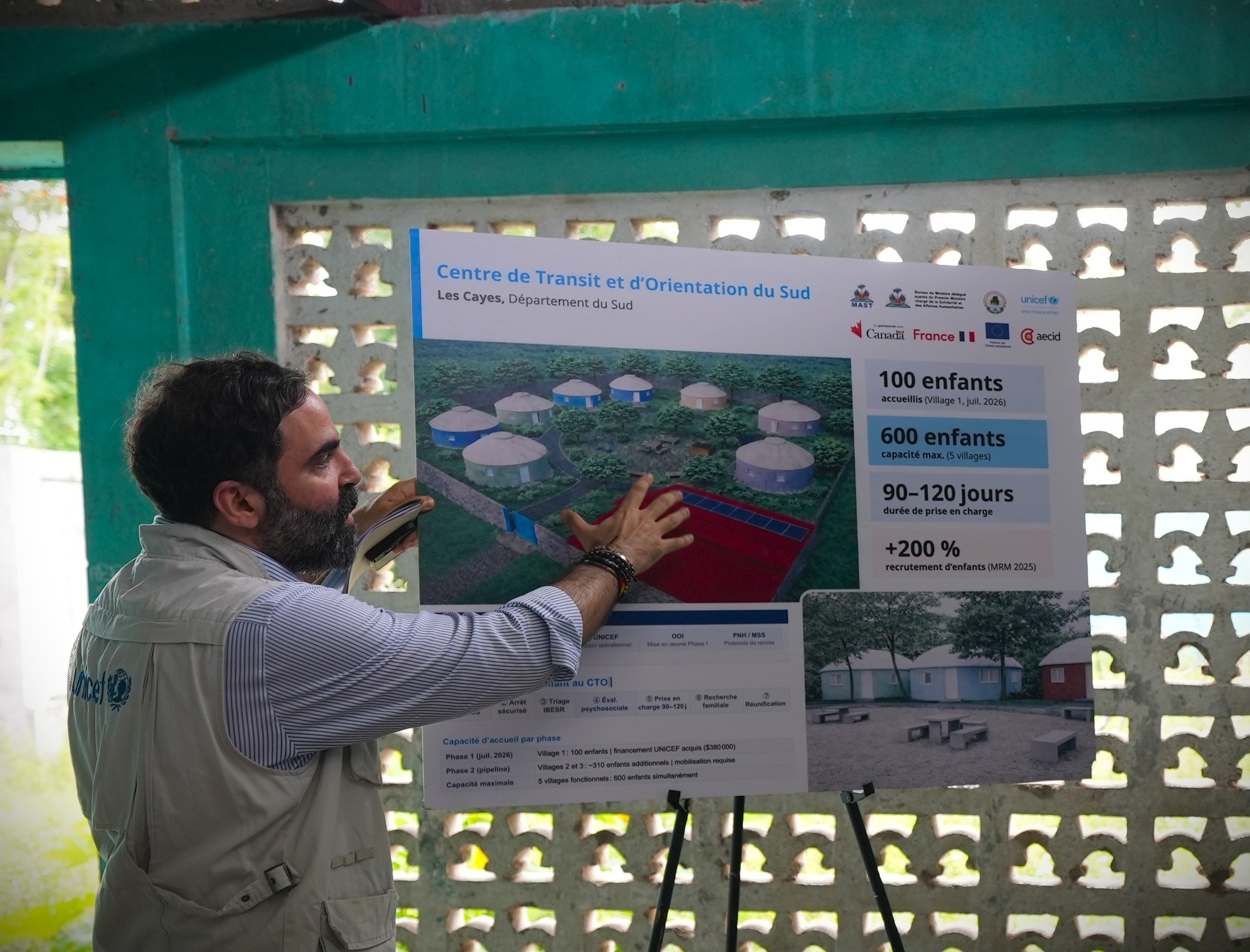 El día 7 el Centro de Tránsito y Orientación (CTO) en Les Cayes la delegación conoció el primer CTO del Gran Sur. Se trata de un centro destinado a ayudar y reintegrar a niños, niñas y adolescentes que han sido recrutados por bandas armadas. Este centro, apoyado por UNICEF, puede acoger a 100 niños, niñas y adolescentes, con una ampliación prevista para 600 beneficiarios/as para julio de 2026. Esta iniciativa ofrece atención de emergencia, evaluaciones psicológicas, alojamiento temporal de 3 a 4 meses y prepara a los jóvenes para reunirse con su familia. El proyecto cuenta con una contribución de 326 000 euros de la AECID, en un período de 18 meses.