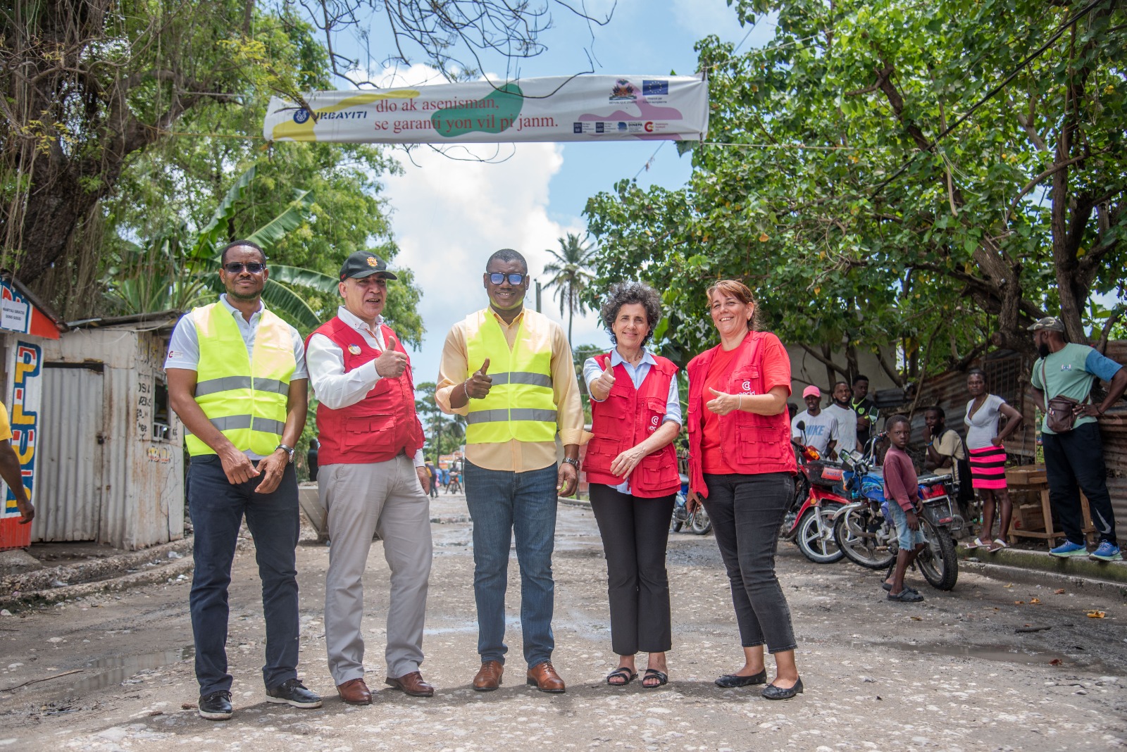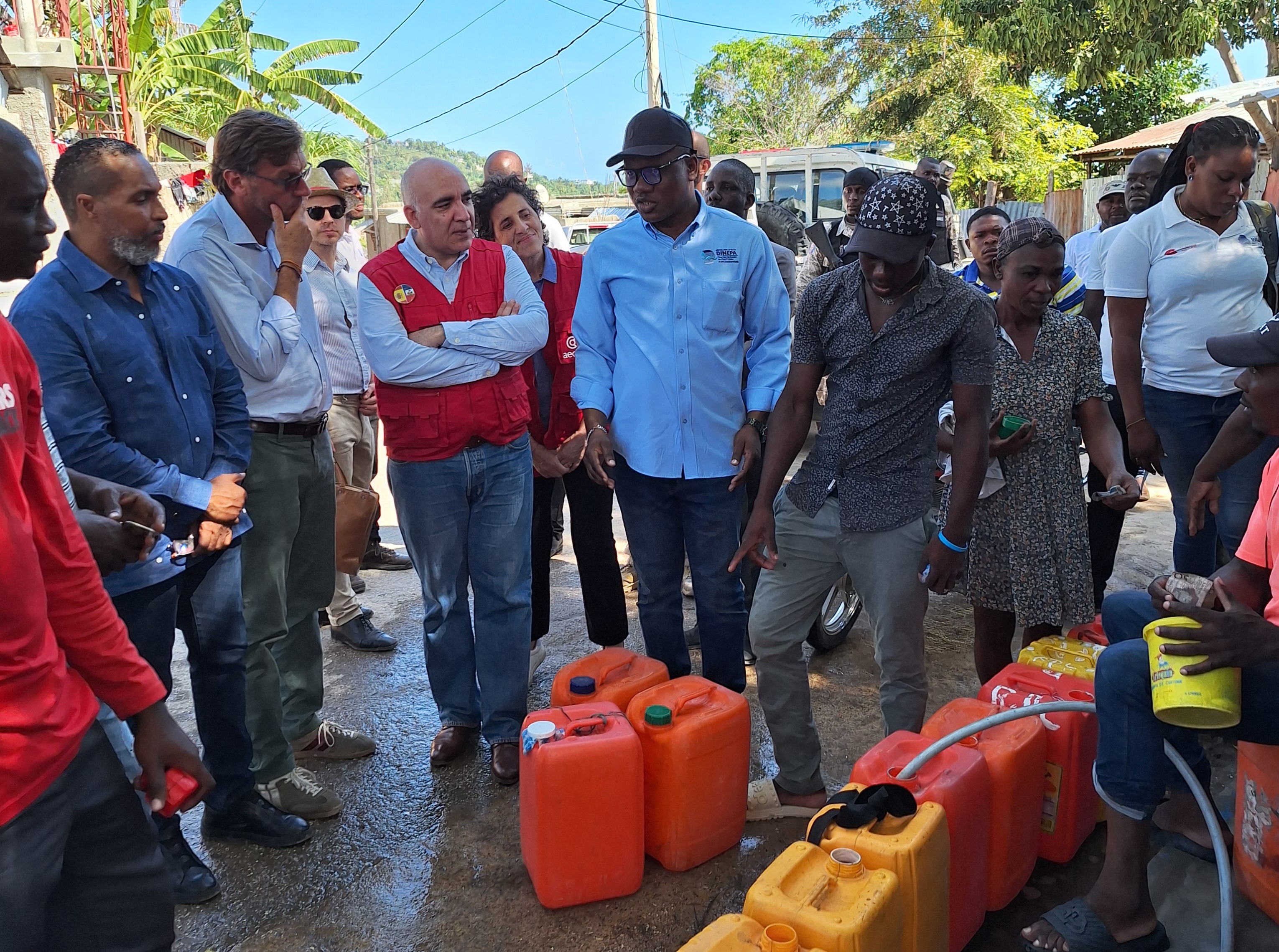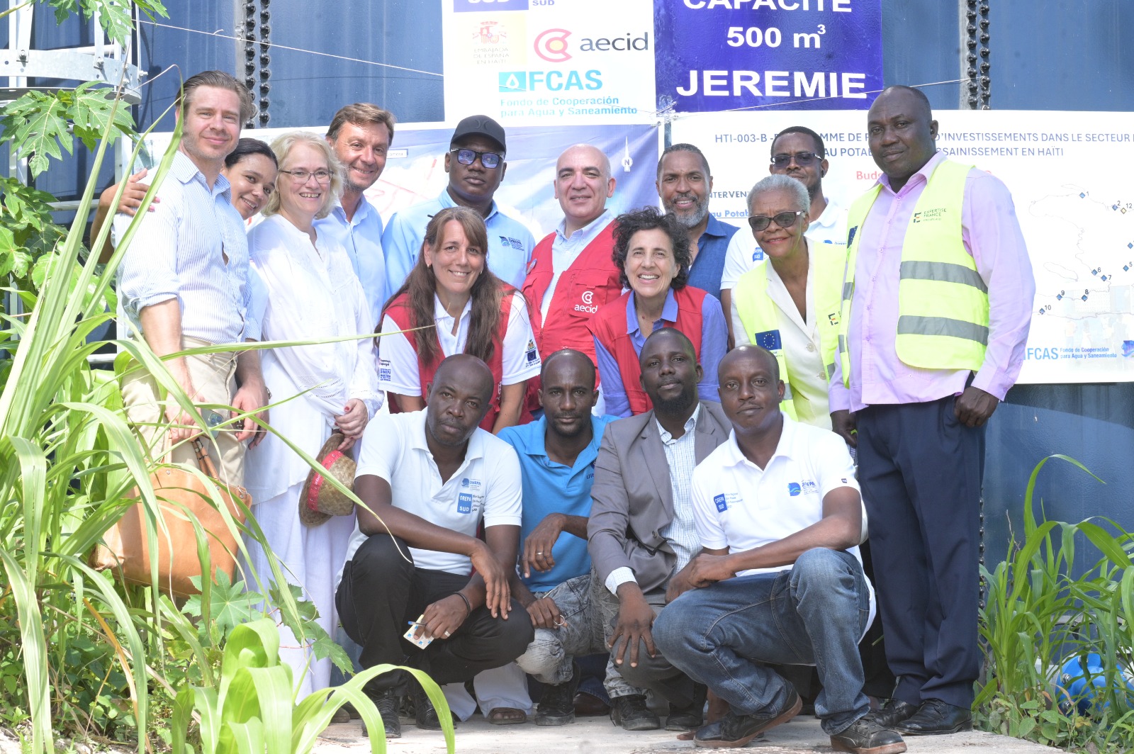 El 9 de abril, en Jérémie, el Team Europe visitó los avances logrados en el marco del programa de mejora del agua potable y saneamiento de la AECID entre los que se encuentra el depósito de Caracoli, una infraestructura clave de 500 m³ que ya asegura el almacenamiento y distribución de agua potable para la ciudad. Entre otros trabajos realizados están la construcción de 23 km de tuberías para transportar agua y 20 km más para su distribución, la rehabilitación de tomas de agua y tanques, quioscos, fuentes públicas y conexiones domiciliarias.