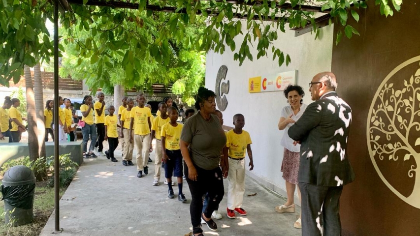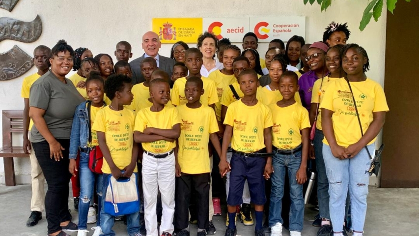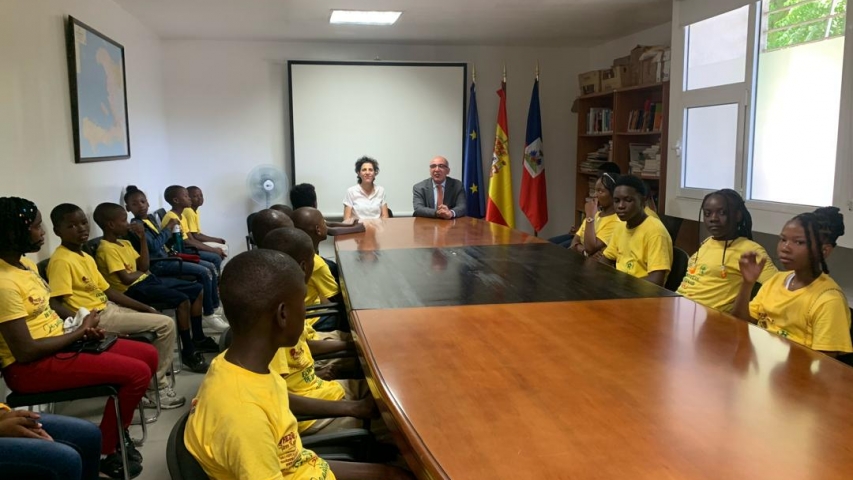 El embajador de España en Haití recibe a niños y jóvenes de la escuela de verano de la REFKAD (Rezo Fanm Kapab d'Ayiti)
