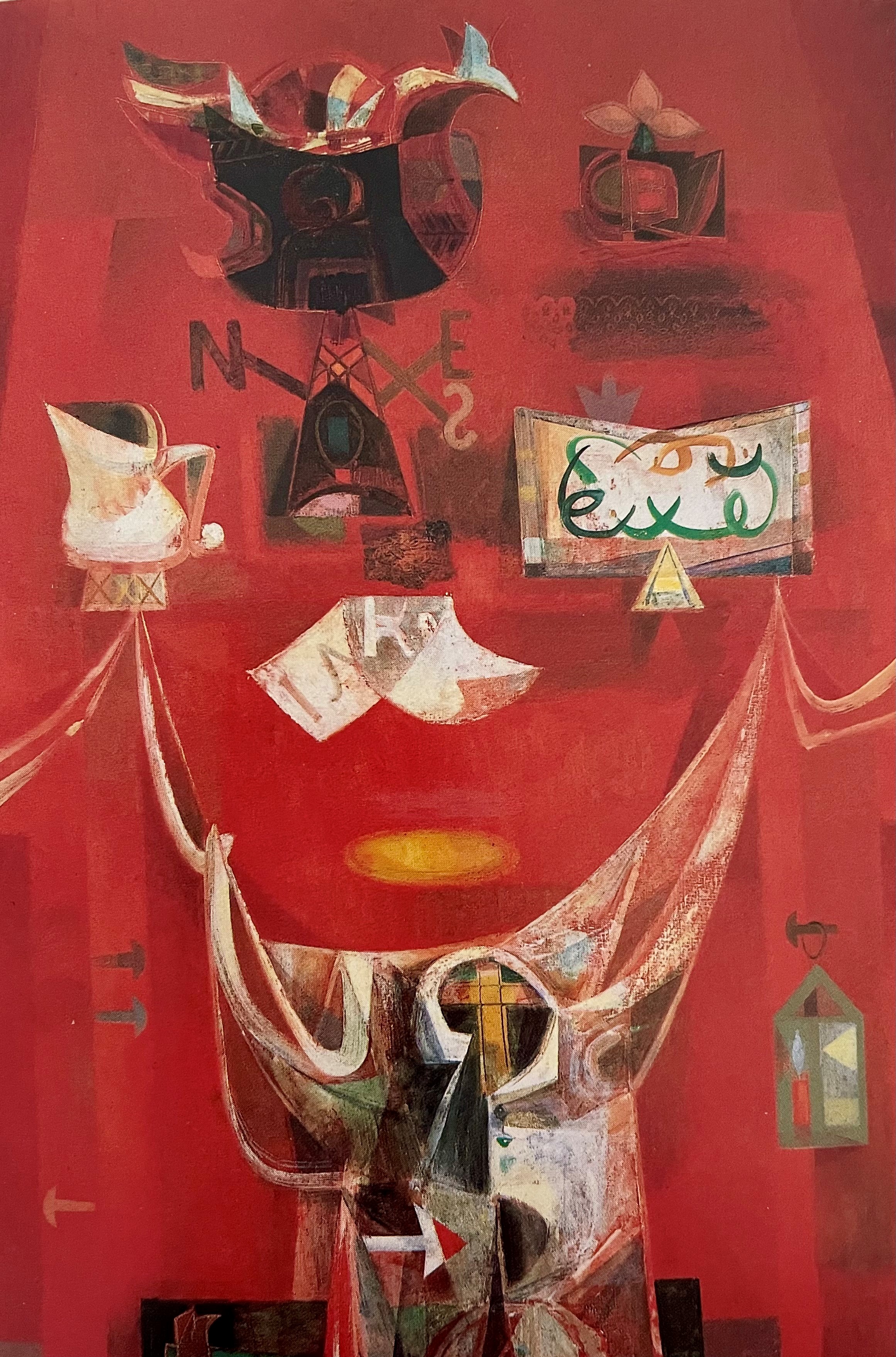 Aunque nació en Barcelona, Alejandro Obregón se trasladó a los seis años con su familia a Barranquilla, ciudad natal de su padre, quien fundó allí una fábrica textil. Más tarde residió en Francia y en Nueva York, y a mediados de los años cincuenta regresó a Colombia con un lenguaje pictórico plenamente definido, caracterizado por la fuerza expresiva y el lirismo de sus imágenes. Durante su estancia en Francia, Obregón realiza Mesa del Gólgota (ca.1952), obra que marca un punto de inflexión en su carrera. En ella incorpora un lenguaje simbólico que perdurará en su producción posterior y se consolida como una pieza clave dentro de su etapa modernista de los años cincuenta. La pintura propone una interpretación intensa de la Pasión de Cristo: la corona de espinas, los clavos que sostienen un paño y el letrero INRI articulan una visión espiritual y fragmentada de la crucifixión, muy alejada de la representación tradicional. En 1955, Mesa del Gólgota se expone en la Unión Panamericana de Washington junto a otras obras de su periodo francés, como Tres copas. En esa ocasión, el reverendo Robert Hunsicker adquiere la obra para su colección privada en Nueva York, mientras que Alfred H. Barr, director del MoMA, compra Souvenir de Venecia (1954) para la colección del museo. Un año más tarde, Mesa del Gólgota obtiene un premio dotado con 50.000 ptas. en la III Bienal Hispanoamericana de Arte de Barcelona, y Obregón recibe el primer Premio Guggenheim con Estudiante muerto (1956). Ese mismo año participa en la I Bienal de Arte del Caribe y del Golfo de México, en Houston. Considerado uno de los artistas más influyentes del siglo XX en Colombia y Latinoamérica, Obregón renovó la tradición plástica e introdujo la modernidad en la escena artística del país. Su pintura —de manchas vigorosas y pinceladas expresivas— inspiró a figuras como Fernando Botero y Cecilia Porras, también presentes en la colección de la AECID, y marcó profundamente a generaciones posteriores. La crítica argentina Marta Traba lo definió como “el primer artista moderno colombiano” por la originalidad de su lenguaje pictórico. La obra fue prestada en 2011 a la Biblioteca Nacional de España para la exposición América Latina. 200 años de historias (1810–2010), organizada junto a Acción Cultural Española con motivo del bicentenario de las independencias americanas. Existe, al menos, otra versión posterior y de menor tamaño de Mesa del Gólgota reproducida a continuación. Otra versión: La mesa del Gólgota, Óleo sobre lienzo, 160 x 140 cm. 1956 Para más información consultar el catálogo: Blanco Conde, Mª. (2016). Catálogo de la colección artística de la Agencia. AECID. Disponible en línea.