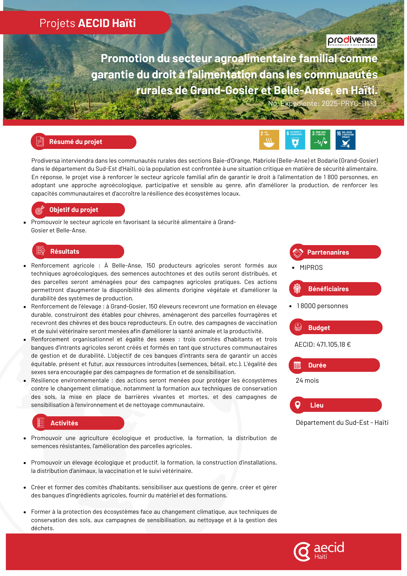 2025 - PRODIVERSA - Promotion du secteur agroalimentaire familial comme garantie du droit à l'alimentation dans les communautés rurales de Grand-Gosier et Belle-Anse, en Haïti.