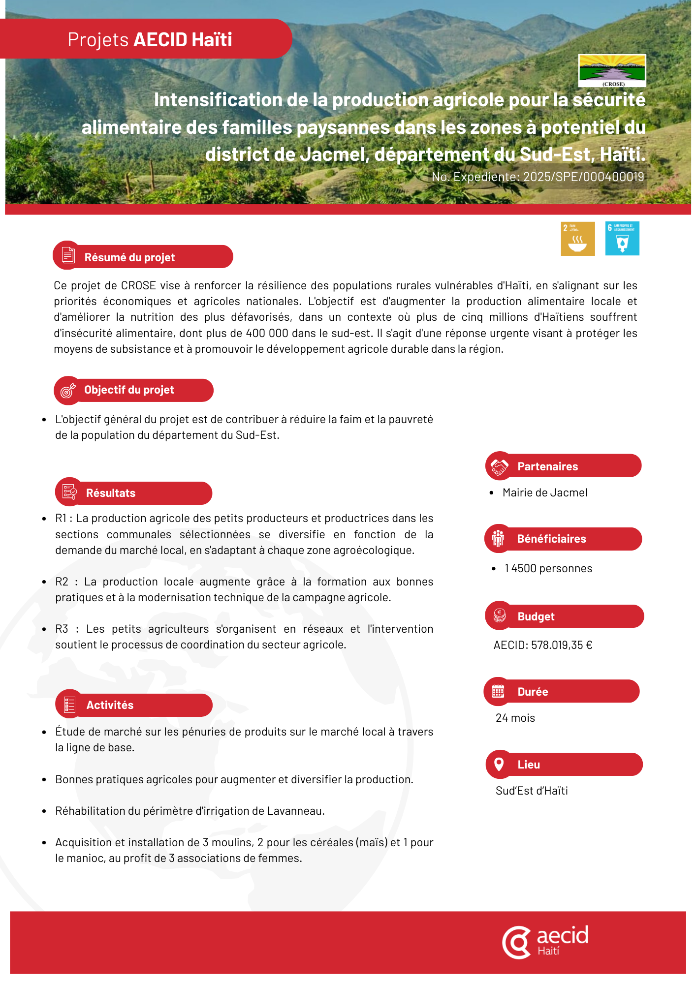 2025 - CROSE - Intensification de la production agricole pour la sécurité alimentaire des familles paysannes dans les zones à potentiel du district de Jacmel, département du Sud-Est, Haïti.