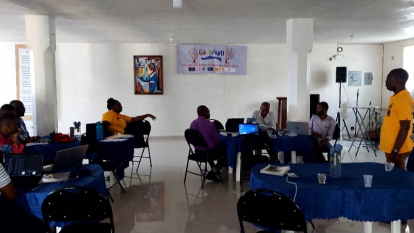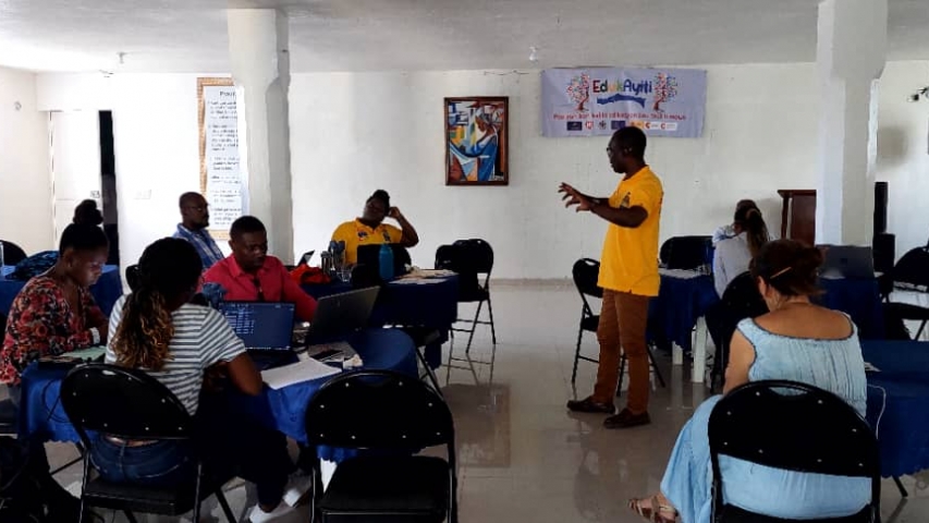 Esta actividad, enmarcada dentro del proyecto denominado EDUKAYITI e implementada, entre otros actores, por el Ministerio de Educación Nacional y la Formación Profesional (MENFP) a través de la Dirección Departamental del Sud-Est, tiene como objeto facilitar una formación práctica a técnicos de las Direcciones Técnicas del MENFP y de la Dirección Departamental, con el fin de facilitar la adquisición de competencias y, por tanto, autonomía para la elaboración de los mismos. Los mapas escolares son uno de los instrumentos de base y fundamentales para la planificación educativa y, por tanto, una herramienta importante para el MENFP. La elaboración de los mapas ha pasado ya por varias fases, entre ellas, formación básica sobre la temática, la validación de una metodología nacional que marca las directrices para la elaboración de los mapas, la recopilación de datos en terreno (hogares y centros educativos de educación básica y formación profesional) y el tratamiento inicial de los datos. Esta formación permite avanzar un paso más, facilitando una formación práctica que se materializa en la elaboración de dos mapas escolares: uno a nivel preescolar y fundamental y otro a nivel de secundaria y formación profesional, para la comuna de Thiotte.