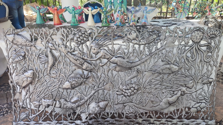 La ausencia total de fuerzas de seguridad del Estado y la creciente inseguridad de la zona, así como la epidemia de Covid19, han repercutido en un descenso continuado del turismo hasta su completa desaparición. Y con ello han bajado drásticamente los ingresos de las familias. Algunos maestros artesanos han emigrado, principalmente a Estados Unidos, y otros se ven forzados a cambiar de oficio. Por esta razón, en colaboración con la Fundación AfricAmericA y la Asociación de Artistas y Artesanos de Croix-des-Bouquets (ADAAC), y con la intención de impulsar las ventas en un entorno seguro, la Embajada de España organizó la primera Feria de Arte y Artesanía para los artesanos de Noailles en mayo de 2022 en el Hotel NH “El Rancho” de la capital. La primera edición contó con la presencia de la ministra de Cultura y Comunicación, Emmelie Prophete, quien se expresó en nombre del gobierno, y del Primer Ministro Ariel Henry.